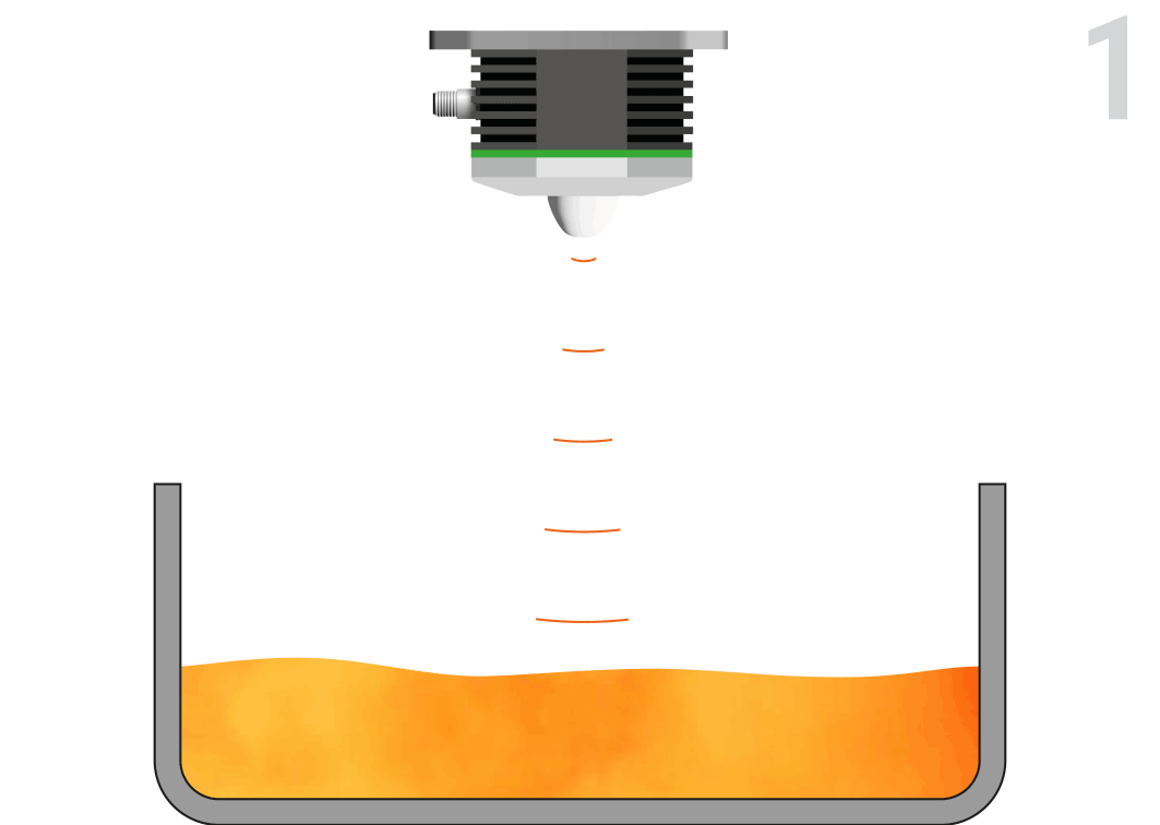 Rilevamento preciso della superficie del metallo liquido fino a 1600 °C, grazie a specifici algoritmi di filtraggio e a un'elevata frequenza di misurazione di 500 Hz.